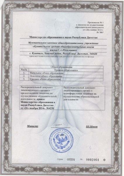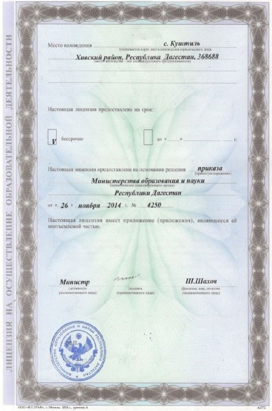 Адрес местонахождения образовательной организации* 368684 РЕСПУБЛИКА ДАГЕСТАН РАЙОН ХИВСКИЙ СЕЛО Куштиль