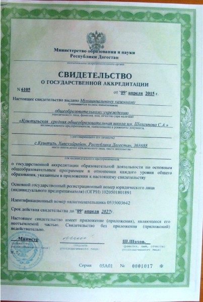 Полное наименование образовательной организации* Муниципальное казенное общеобразовательное учреждение "Куштильская средняя (полная) общеобразовательная школа им. Шахсинова С.А."